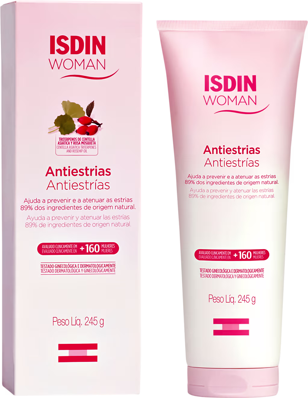 Creme para estrias para todos os tipos de pele. ISDIN Woman Velastisa reduz as marcas causadas por aumento de peso e gravidez.