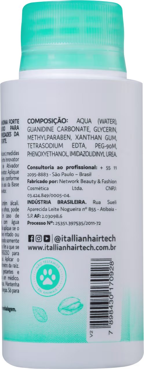 Relaxamento capilar para cabelos volumosos. Itallian Hairtech Innovator Ativador Guanidina desenvolvido para ativar as propriedades da base relaxante, que reduz ou abre os cachos.