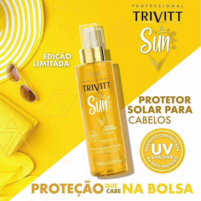 O Protetor Solar Capilar Itallian Hairtech Trivitt Sun mantém os fios maleáveis e com brilho, é ideal para o uso em praia e piscina. Possui proteção UVA/UVB.
