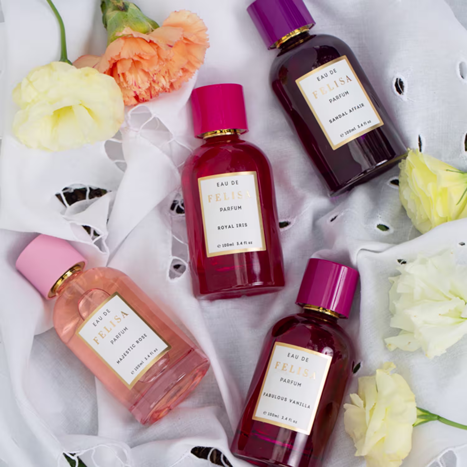 Todas as fragrâncias Felisa são veganas, não testadas em animais, feitas com ingredientes naturais e dermatologicamente testadas.