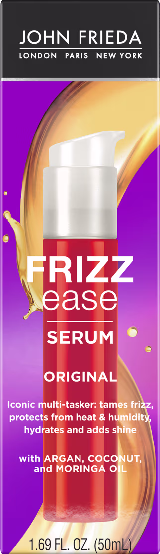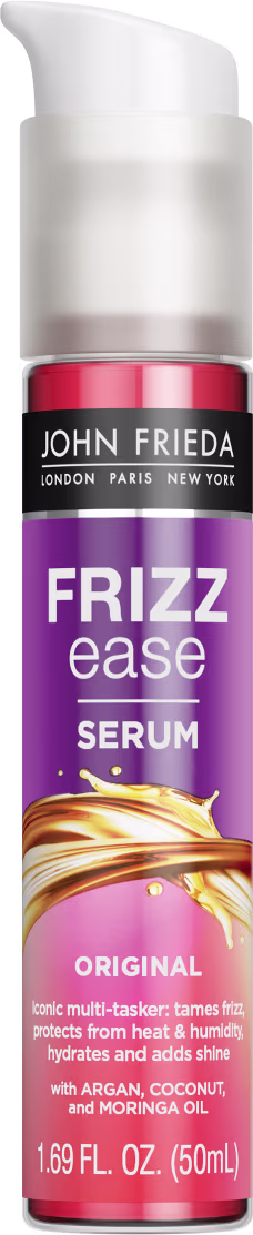 Sérum para cabelos com frizz, secos e danificados. John Frieda Frizz Ease Original é multifuncional, pois ajuda a reduzir o frizz enquanto protege contra o calor e a umidade, hidrata, fortalece e dá brilho aos fios. Ideal para cabelos de espessura média a encorpados.