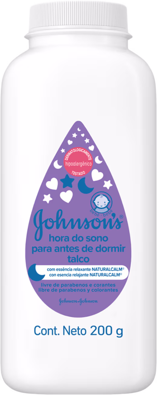 O Talco Johnson's Baby Hora do Sono tem essência NATURALCALM®, sendo ideal para ser usado antes de dormir, já que relaxa. Sua suave textura deixa a pele do bebê perfumada, macia e protegida contra a umidade.