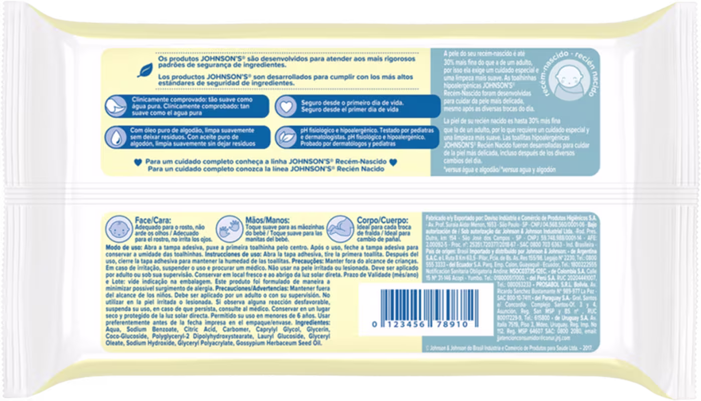 As toalinhas de Johnson's Baby Recém-Nascido são tão suaves e seguras quanto algodão e água. Sua fórmula hipoalergênica chega de lágrimas, permite o uso no rosto, sem arder os olhos, e totalmente seguras para uso desde o primeiro dia de vida. Dermatologicamente testado, livre de parabenos, corante e álcool.