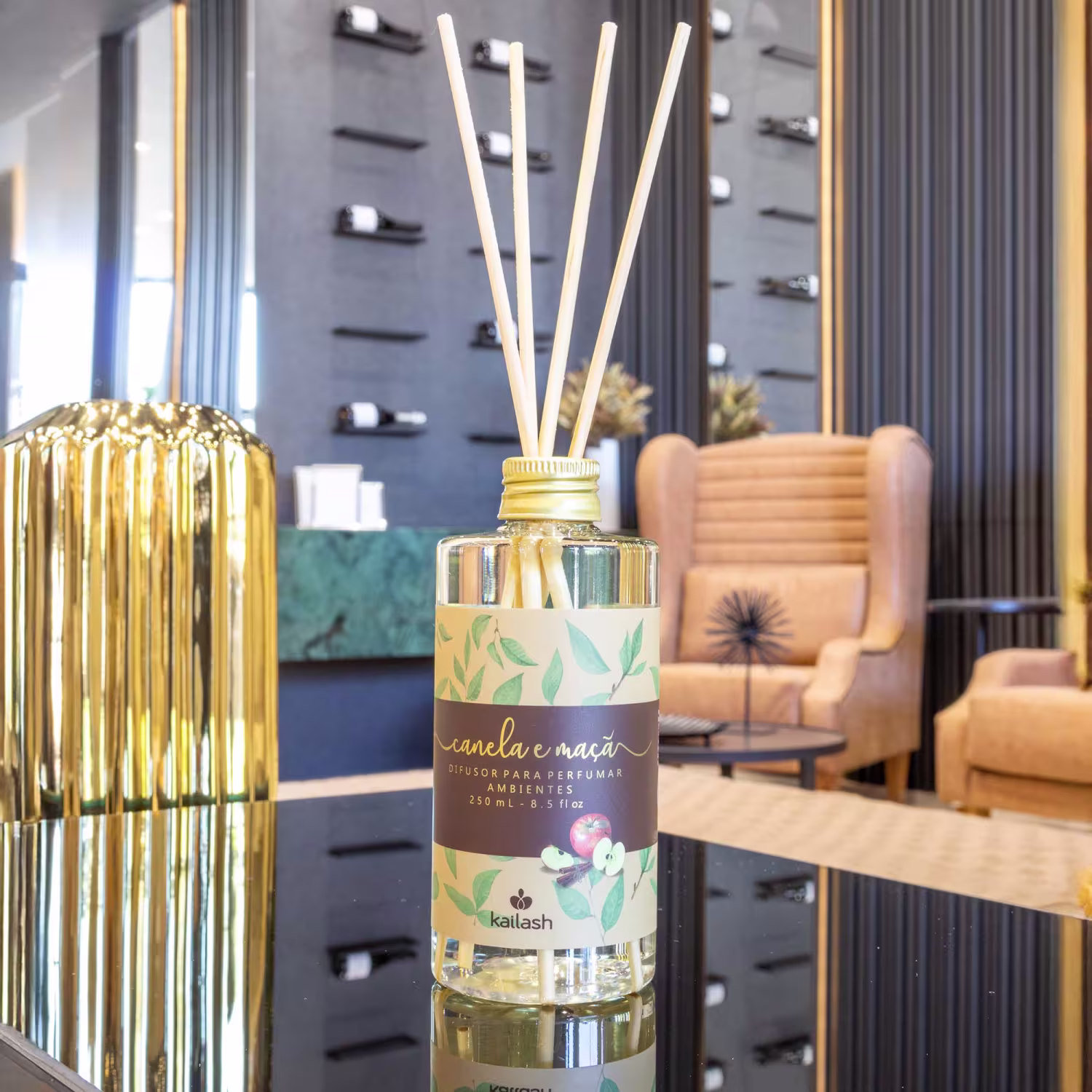 Difusor para perfumar ambientes. Kailash Canela e Maçã cria uma atmosfera acolhedora e elegante em ambientes.