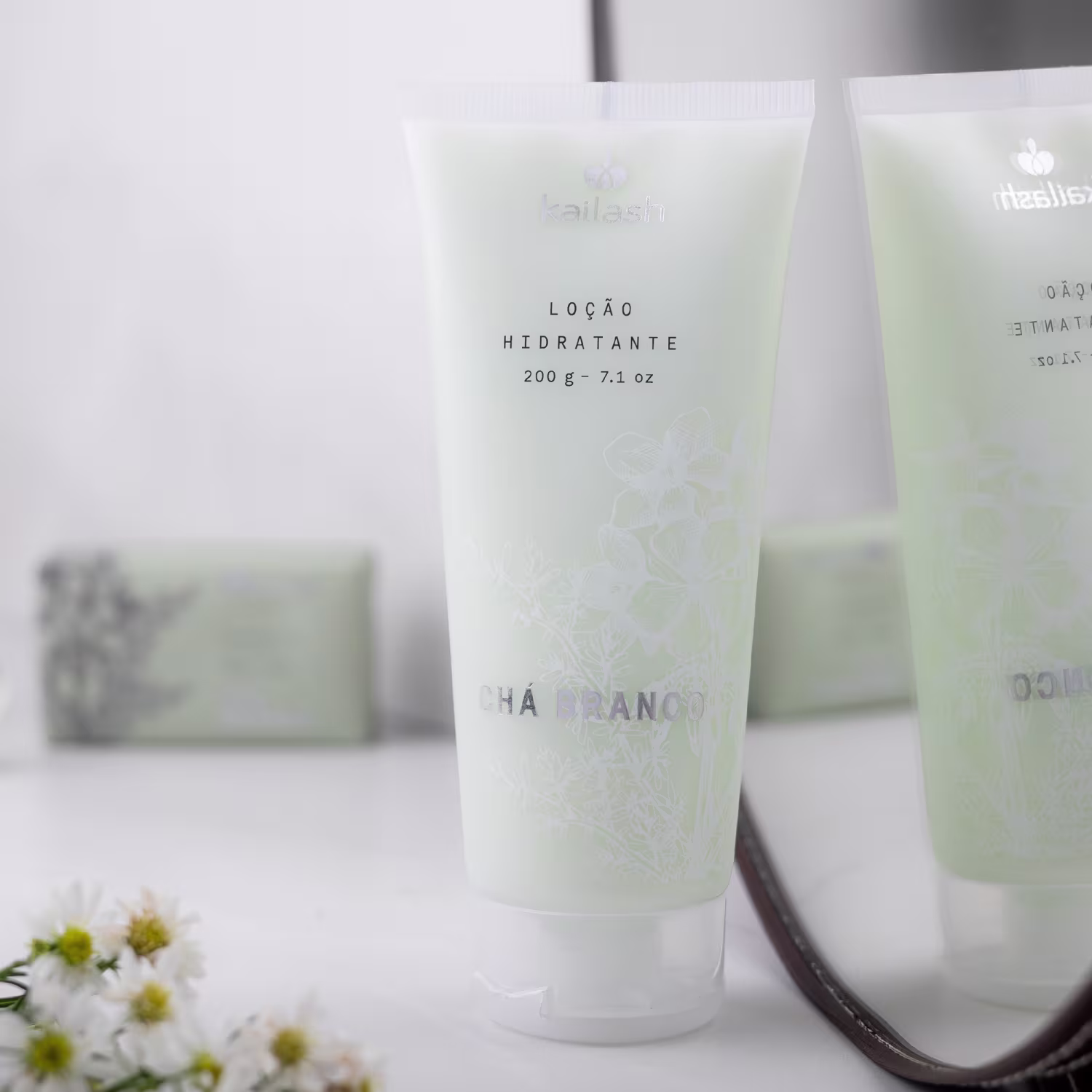 Loção hidratante corporal. Kailash Chá Branco combina hidratação intensa com uma fragrância elegante e contemporânea.