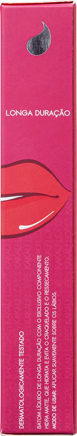 Batom Líquido Kakau Lopes Hidra Matte oferece alta cobertura, longa duração e não permite que os lábios fiquem com aspecto craquelado durante o uso. Também contém fórmula rica em vitamina E que combate o ressecamento e garante conforto na boca, já que age como lubrificante, hidratante e regenerador da pele.