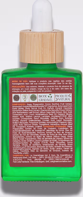 Não sei o CEPSérum para estrias. Kaki Cosmetics Nano Anti-Estrias proporciona a diminuição de estrias e aumenta a elasticidade e firmeza da pele.