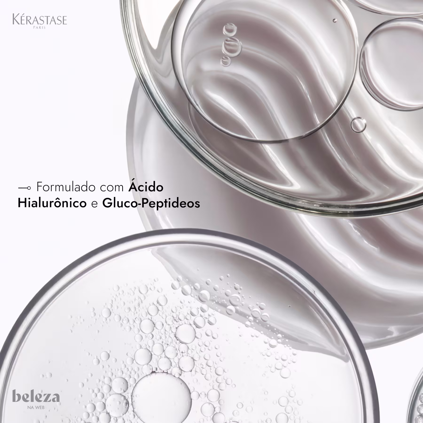 - ▸Com Ácido Hialurônico, Glicopeptídeo e Ceramidas, que fortalecem e reparam a superfície da fibra capilar.