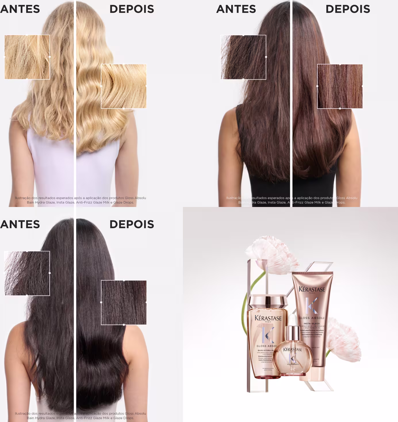 Condicionador para todos os tipos de cabelos. Kérastase Gloss Absolu entrega fios totalmente brilhantes e livres do frizz.