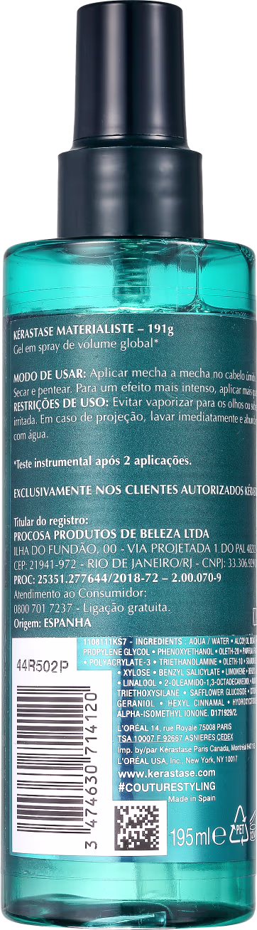 Gel modelador em spray para todos os tipos de cabelos. Kérastase Styling Matérialiste alinha, facilita a escova e sustenta o penteado. Também protege seu cabelo das altas temperaturas de ferramentas de calor, como babyliss e pranchas.