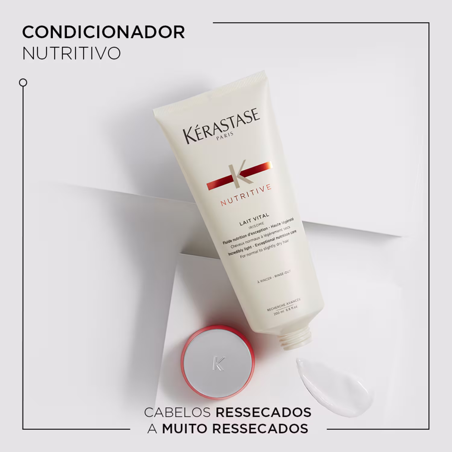 Kérastase Nutritive Lait Vital tem o poder de restaurar as fibras capilares, deixando seu cabelo com maciez intensa, com toque sedoso, e um brilho deslumbrante.