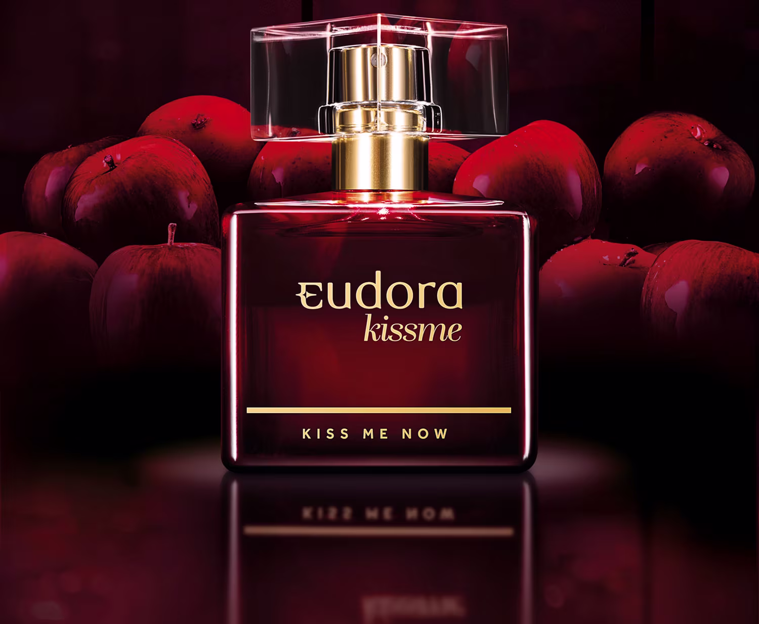 Kiss Me Now é um desodorante colônia Eudora feminino floriental gourmand. Seduz com a força e ousadia representada pela cor vermelha.