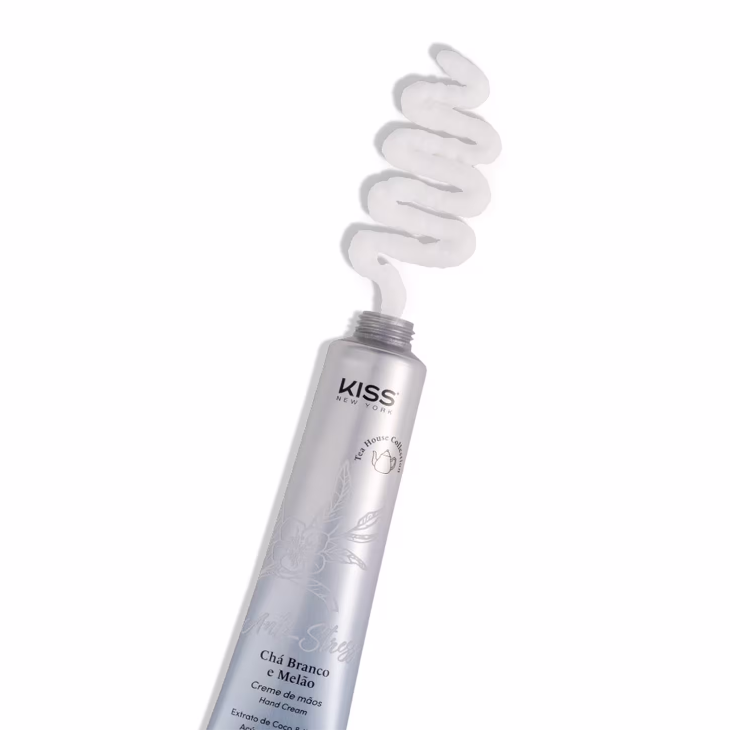 Creme para as mãos com fragrância de chá branco e melão. Kiss New York Anti-stress Chá Branco e Melão traz o toque aveludado e suave para deixar sua pele com energia renovada.
