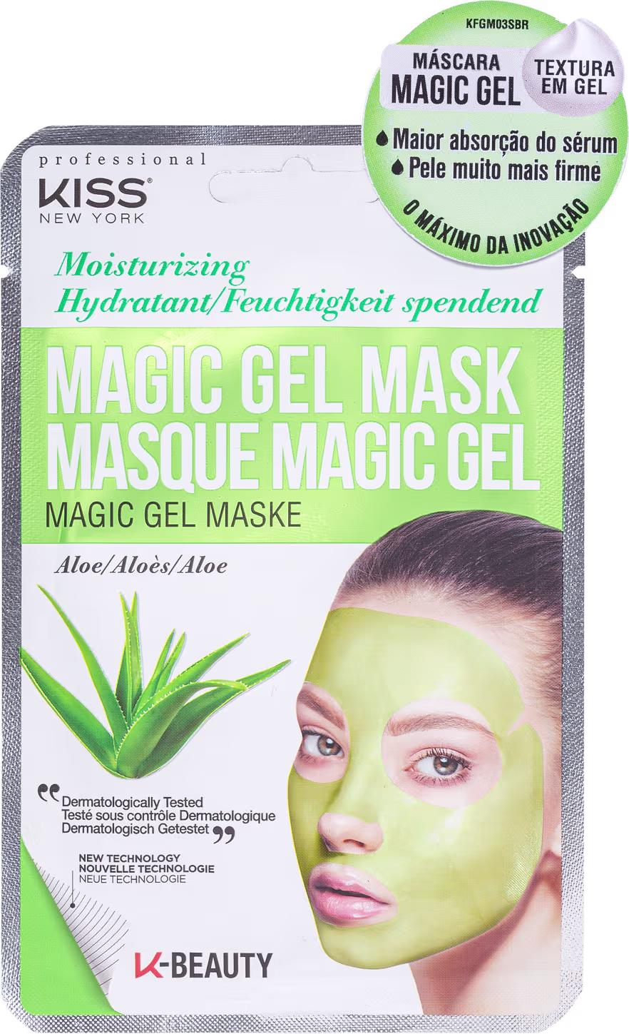 Kiss New York Magic Gel Aloe possui as 3 camadas de gel que retêm a hidratação da superfície e melhoram a absorção do sérum e, por isso, potencializam os benefícios dos ativos. Proporciona um efeito firmador e é extremamente maleável, para cobrir todo o rosto e garantir que toda a pele irá receber o tratamento.