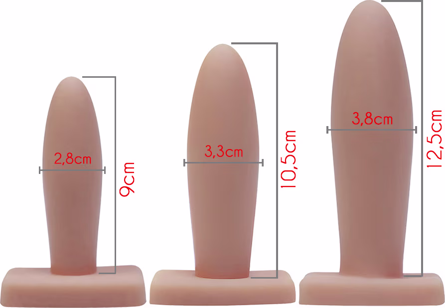 Não sei o CEPKit com três tamanhos de plugue anal. Aine Flexível Básico Bege apresenta diferentes tamanhos para estimulação e preparação íntima segura.