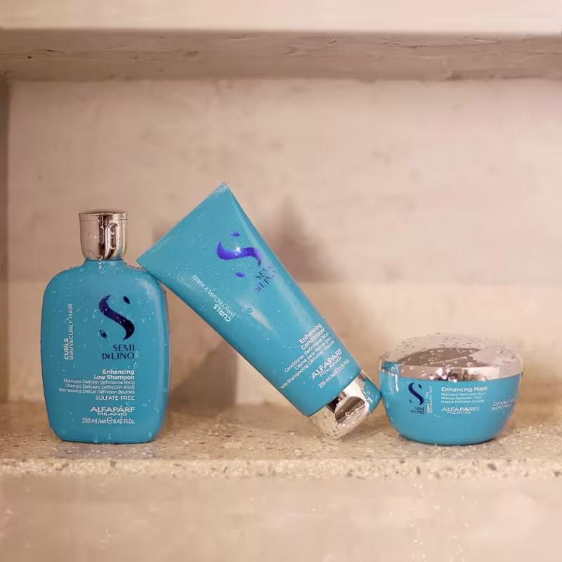 Não sei o CEPKit com shampoo, condicionador máscara para cabelos cacheados. Alfaparf Club Semi di Lino Curls Enhancing confere cachos macios, brilhantes e sem frizz.