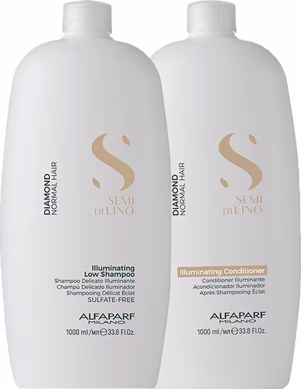 Alfaparf Semi Di Lino Diamond - Shampoo sem Sulfato 1L: permite uma limpeza delicada, sem ressecar os fios nas lavagens. Ele hidrata o cabelo, traz maciez, além de realçar a luminosidade para que fique com um aspecto saudável.