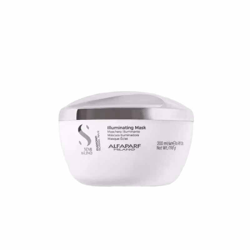 Alfaparf Semi Di Lino Diamond Illuminating - Máscara Capilar 200ml: trata intensamente os fios e condiciona para dar coesão e alinhamento para as cutículas. Assim, os fios ficam extremamente sedosos e passam a brilhar mais intensamente, com aspecto saudável e muito bonito.