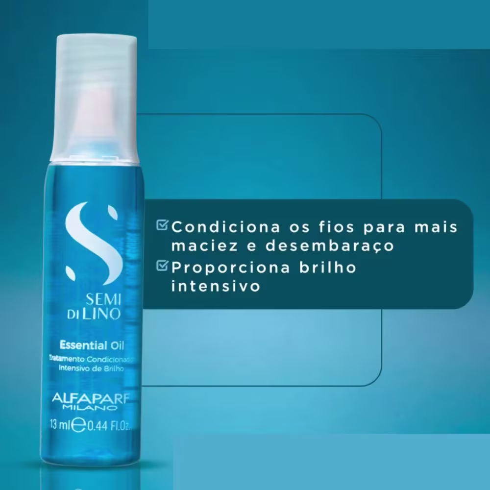 Kit com ampolas capilares para cabelos equilibrados. Alfaparf Semi di Lino Essential Oil desembaraça e proporciona maciez, movimento e brilho intenso aos fios.
