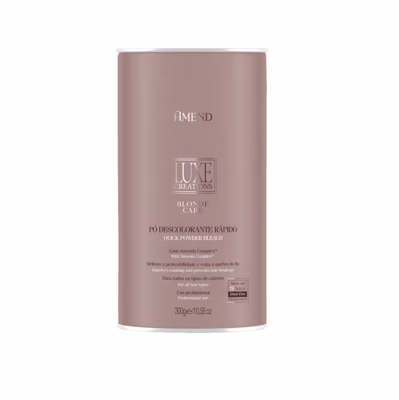 Amend Luxe Creations Blonde Care - Pó Descolorante 300g: clareia até 9 tons, evita a quebra do fio e melhora a penteabilidade.