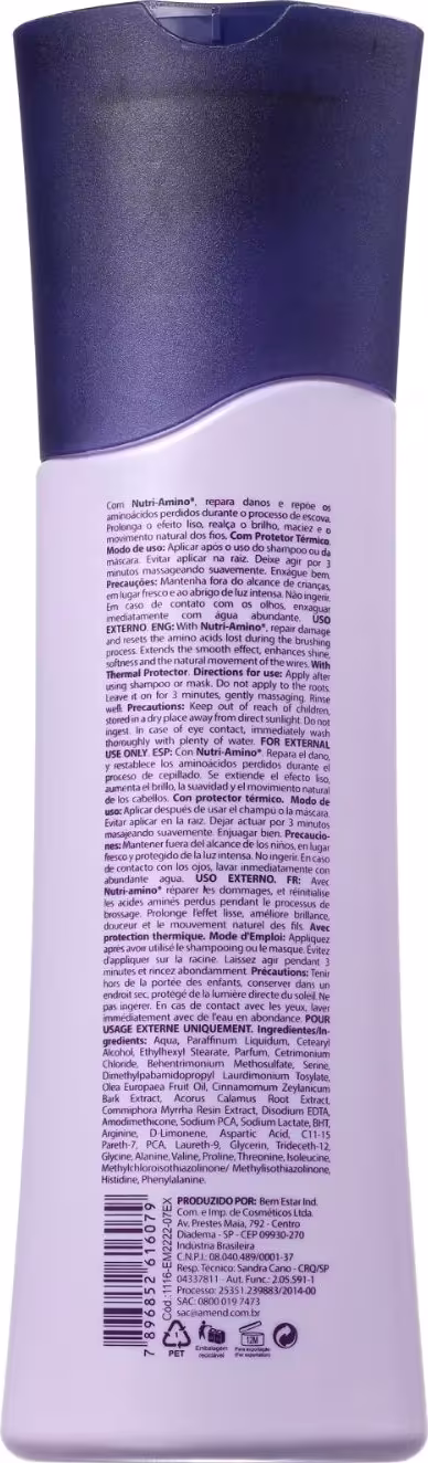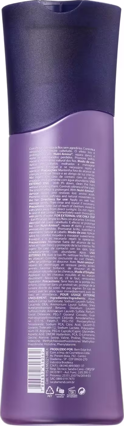 Amend Pós Progressiva - Shampoo 250ml: sem sal, higieniza suavemente, nutre e possui pH baixo que mantém a disciplina.