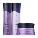 Kit com shampoo, condicionador e máscara para cabelos quimicamente tratados. Amend Pós Progressiva Expertise Trio garante maciez e saúde, enquanto prolonga o efeito liso.