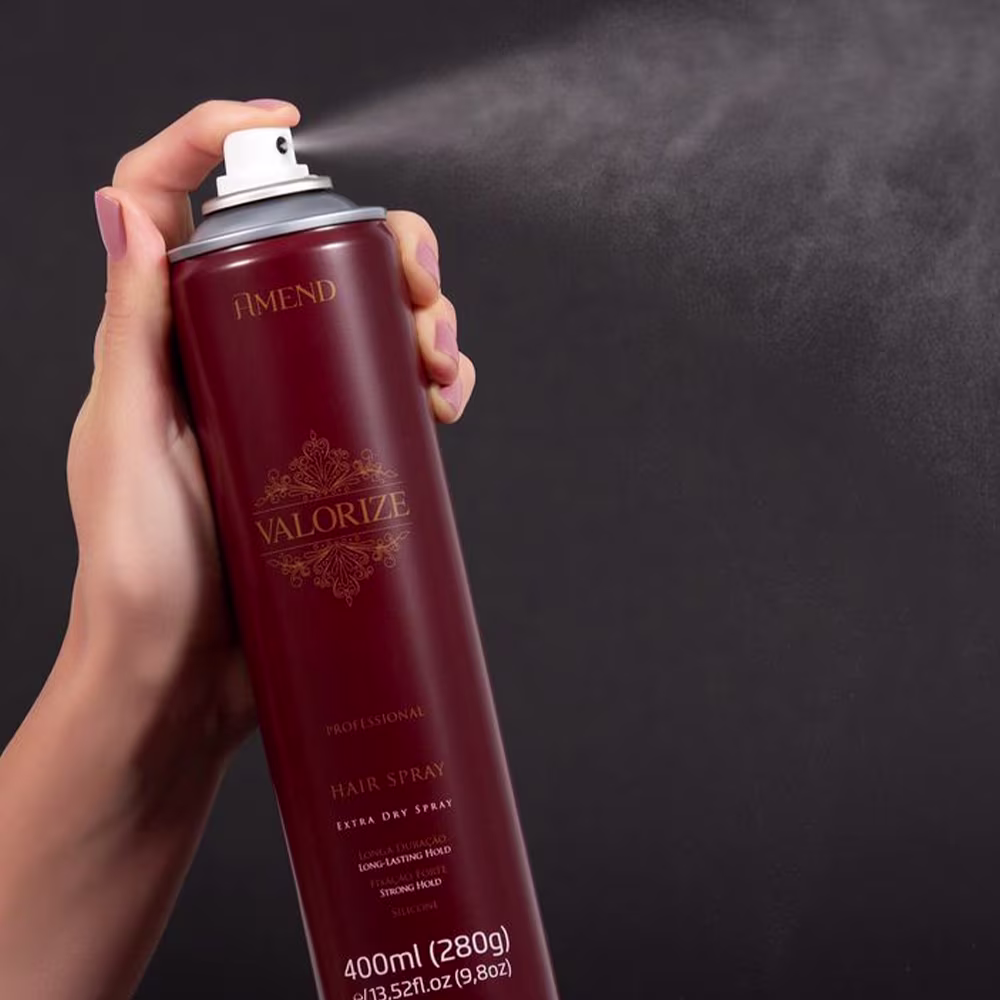 Amend Valorize - Spray Fixador Forte 400ml: mantém o penteado no lugar enquanto confere brilho e proteção contra a umidade.