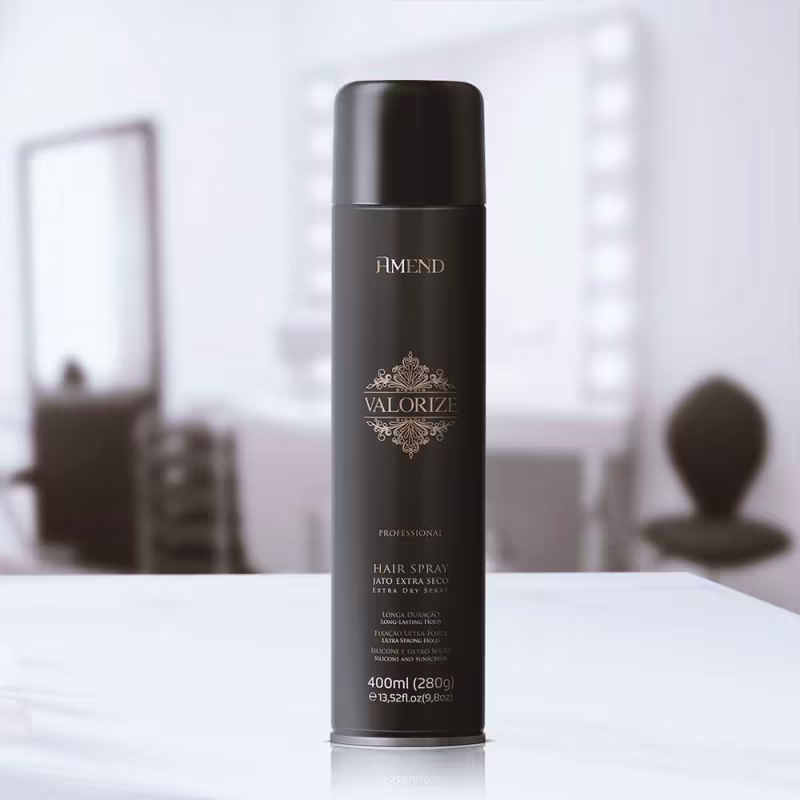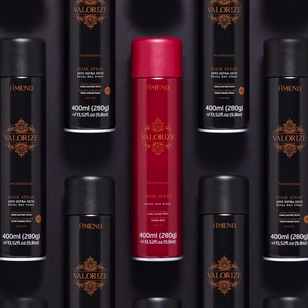 Amend Valorize Hair Spray Fixador Ultra Forte 400ml: mantém o penteado no lugar enquanto confere brilho e proteção contra a umidade.