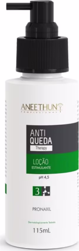 Aneethun Antiqueda Therapy - Loção Estimulante 115ml: deixa uma sensação leve nos fios e no couro cabeludo. Ajuda na manutenção dos fios, estimula a síntese de proteínas, regula a oleosidade excessiva, protege contra a proliferação de bactérias, recupera a maciez e devolvem o brilho natural.