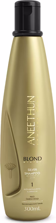 Aneethun Blond System - Shampoo Silver 300ml: limpeza inteligente com Tecnologia Ótica que retira gradativamente o amarelamento dos fios grisalhos e ilumina o tom claro dos cabelos loiros. pH 5,0.