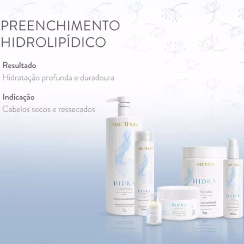 Aneethun Hidra - Shampoo 300ml: limpa suavemente ao passo que mantém a hidratação natural dos fios e proporciona maior suavidade aos cabelos. Tudo isso sem tirar a leveza, maciez e maleabilidade. pH 5,5