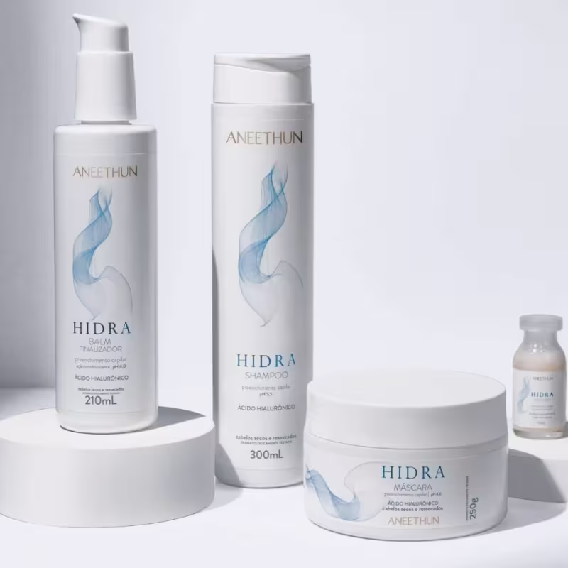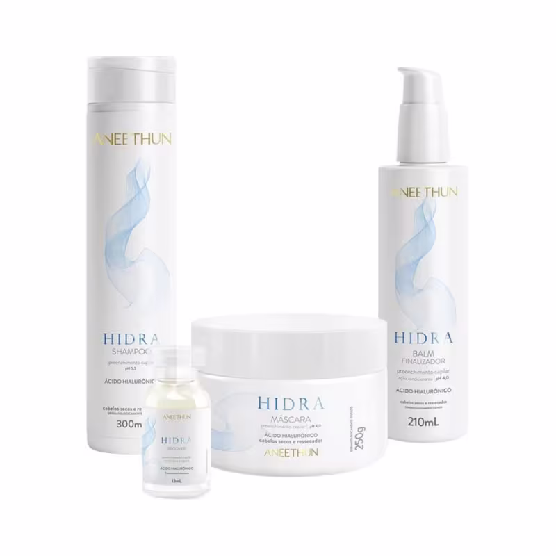 O Kit Aneethun Hidra faz a reposição dos componentes fundamentais para a fibra capilar. Atua de dentro para fora, agindo em todas as camadas do fio. Promove o equilíbrio hídrico no interior da fibra e envolve a superfície com um manto lipídico, responsável por proteger e alinhar as cutículas. Possui tecnologia avançada, que garante máxima recuperação e retém a umidade natural dos fios, devolvendo a vitalidade e proporcionando maleabilidade aos cabelos.