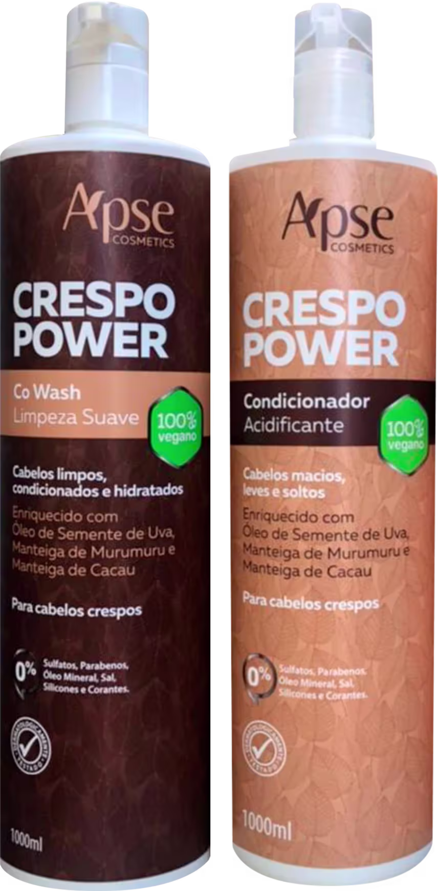 Kit com condicionador e co wash para cabelos crespos. Apse Cosmetics Crespo Power deixa o cabelo forte, hidratado, macio e maleável.