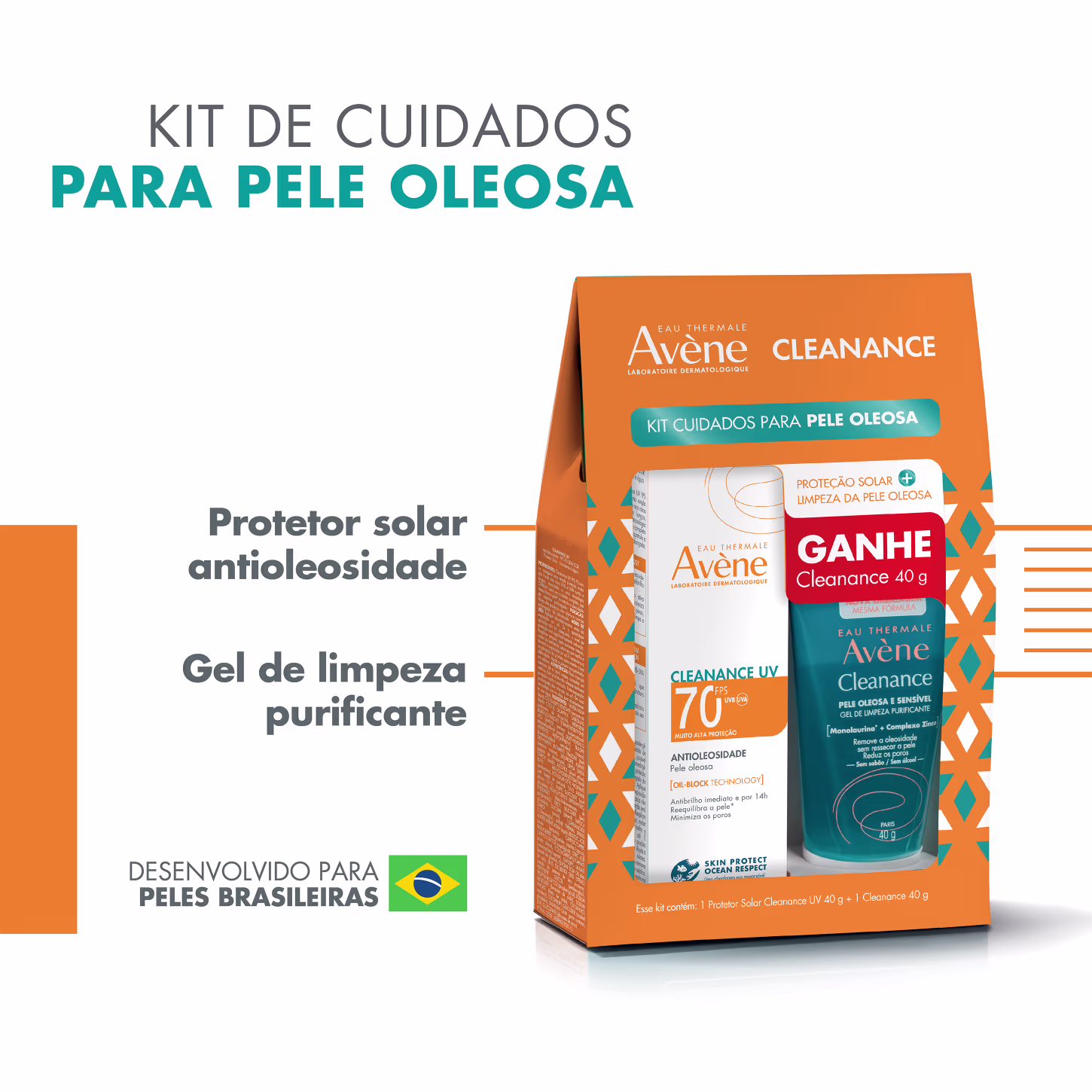 O Kit Avène Cleanance é o combo ideal para a sua rotina de cuidados com a derme. As fórmulas oferecem um tratamento completo, garantindo um rosto limpo, com a oleosidade controlada e uma sensação de leveza.