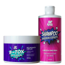 Kit com shampoo antirresíduos e botox sem formol para cabelos loiros. Bad Rock B-Tox Matizador Duo confere fios lisos e incríveis.