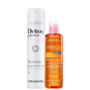 Kit com pré-shampoo e sabonete líquido facial. Beleza na Web Detox Proteína + Vitamina C deixa seu cabelo fortalecido e seu rosto com uma aparência saudável.