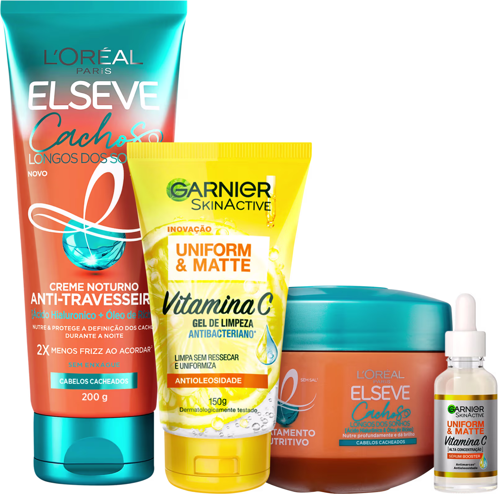 Kit Beleza na Web Garnier Uniform & Matte Vitamina C & Elseve L'Oréal Paris Cachos Longos dos Sonhos (4 Produtos)