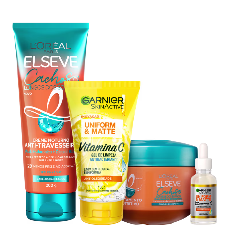 Kit Beleza na Web Garnier Uniform & Matte Vitamina C & Elseve L'Oréal Paris Cachos Longos dos Sonhos, produtos indispensáveis para o dia a dia. Melhores Kits Beleza na Web na BLZ. Ver mais ❯