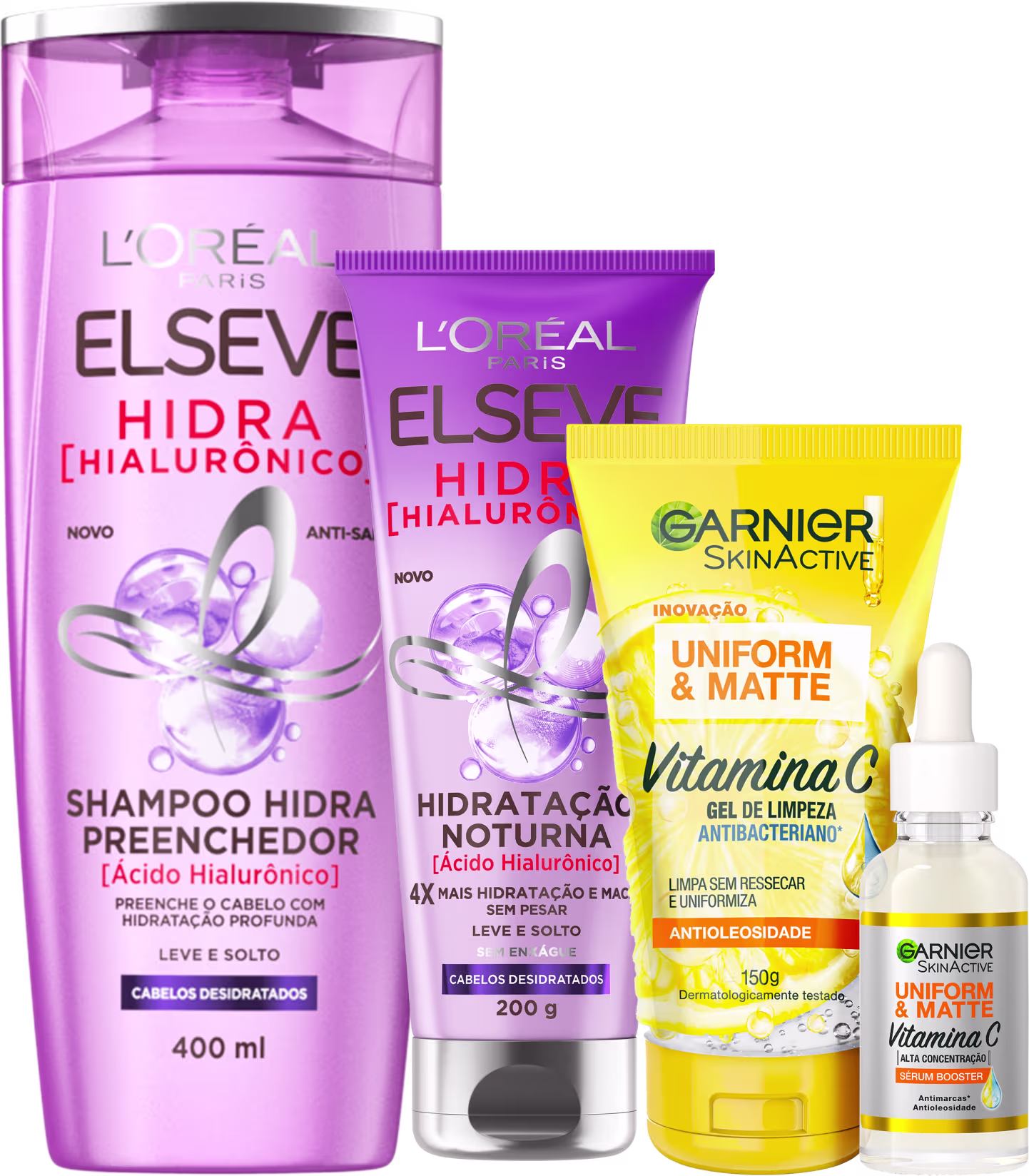Kit Beleza na Web Hidra Hialurônico & Matte Vitamina C, para cabelos secos e pele oleosa. Melhores Produtos Capilares e Faciais de Elseve e Garnier na BLZ. Ver mais ❯