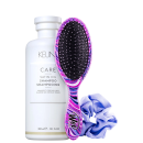 Não sei o CEPKit com escova de cabelo, scrunchie e shampoo para fios secos e opacos. Beleza na Web Keune Care Satin Oil e Wet Brush Swirt Style II limpa suavemente, penteia e prende os fios sem esforço, para a entrega de uma aparência mais saudável no dia a dia para os cabelos.