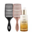 Kit com escovas de cabelo e leave-in para cabelos danificados. Beleza na Web Keune Lumi Coat e Wet Brush Epic Quick Dry Raquete hidrata profundamente, revitaliza os fios com uma escovação fácil, sem dor.