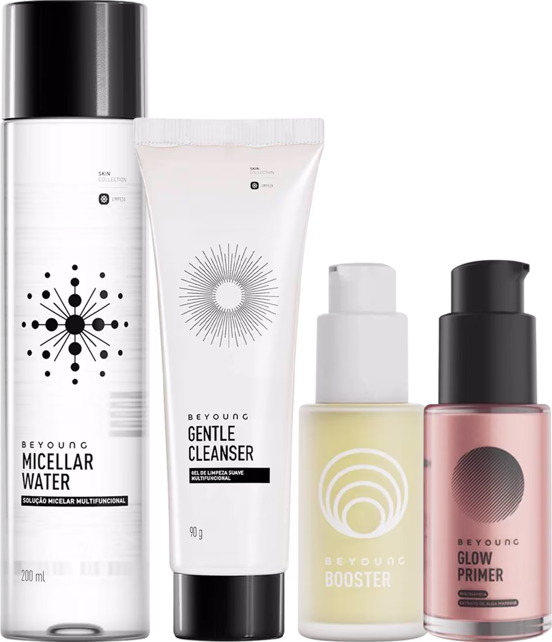 Kit Beyoung Clássicos Glow Primer Rose +Booster + Micellar Water + Gentle Cleanser (4 Produtos)