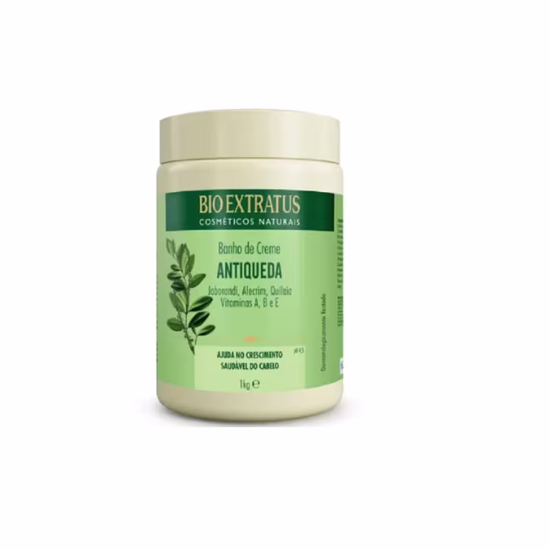 Bio Extratus Jaborandi Antiqueda - Banho de Creme 1kg: é um tratamento revitalizante, rico em vitaminas, ideal para hidratar e fortalecer os fios. Confere brilho e maciez ao cabelo.