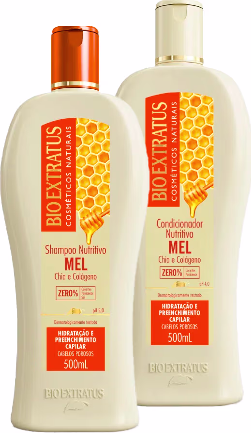 Não sei o CEPKit com shampoo e condicionador para cabelos porosos. Bio Extratus Mel Duo nutre intensamente e trata os cabelos.