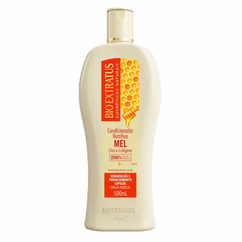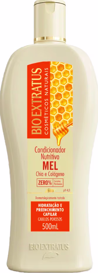 Bio Extratus Mel - Condicionador Nutritivo 500ml: dá condicionamento imediato aos fios, hidrata e nutre, reparando a porosidade.