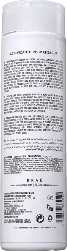 Braé Bond Angel pH - Acidificante Matizador 250ml: remove o amarelado, alinha os fios e facilita o desembaraço dos cabelos. Trata os fios, deixando-os brilhantes e no tom ideal.