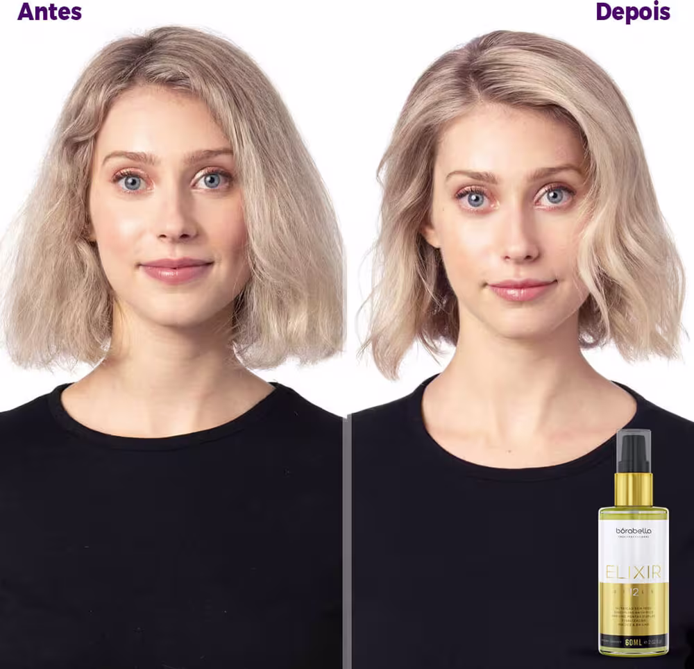 Borabella Elixir 12 Oils - Óleo Capilar 60ml: promove hidratação profunda, nutrição máxima, disciplina, maciez ao toque e um brilho luminoso surpreendente, com apenas com algumas gotas.
