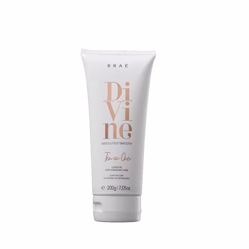 Braé Divine Ten in One - Leave-in 200g: possui 10 poderes de reparação em um único produto. Proporciona hidratação, ação antifrizz, força, proteção térmica, maciez, brilho, proteção UV, ação antiquebra e maleabilidade. Seu cabelo fica revitalizado, nutrido e com uma modelagem leve nos fios.