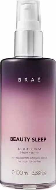 Braé Beauty Sleep Night Serum - Tratamento Capilar Noturno 100ml: sérum de tratamento noturno para cabelos ressecados e secos. Nutre intensamente e protege das agressões externas. Ideal para que os fios despertem mais macios, hidratados, nutridos, fáceis de pentear e protegidos. Sua formulação é composta por quatro ativos principais: Niacinamida, Curveline, Fiber Plug in e Vitamina E. A união dos quatro previne a perda da cor dos cabelos coloridos e potencializa a nutrição dos fios, além de promover um equilíbrio da oleosidade do couro cabeludo e uma poderosa ação antifrizz.