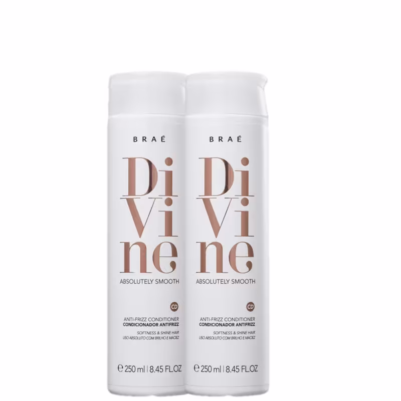 BRAÉ Divine - Condicionador 2x250ml: sela as cutículas, garantindo uma magnífica hidratação e saúde aos fios. Sua fórmula também reduz o volume e é ideal para manter a química dos processos de alisamento, resultando em alinhamento dos cabelos, além de maciez e brilho.
